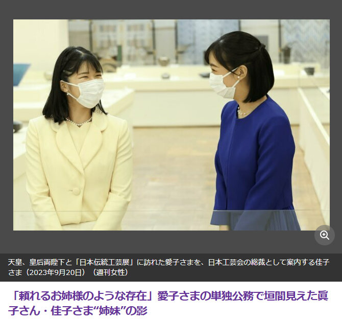 愛子さまのお言葉を普通に素直に聞けば、眞子さん・佳子さま“姉妹”は大事な従姉妹のお姉さま方。佳子様がどんな未来を選ばれても、親しく交流される関係を続けられますよう、お守りしましょう。