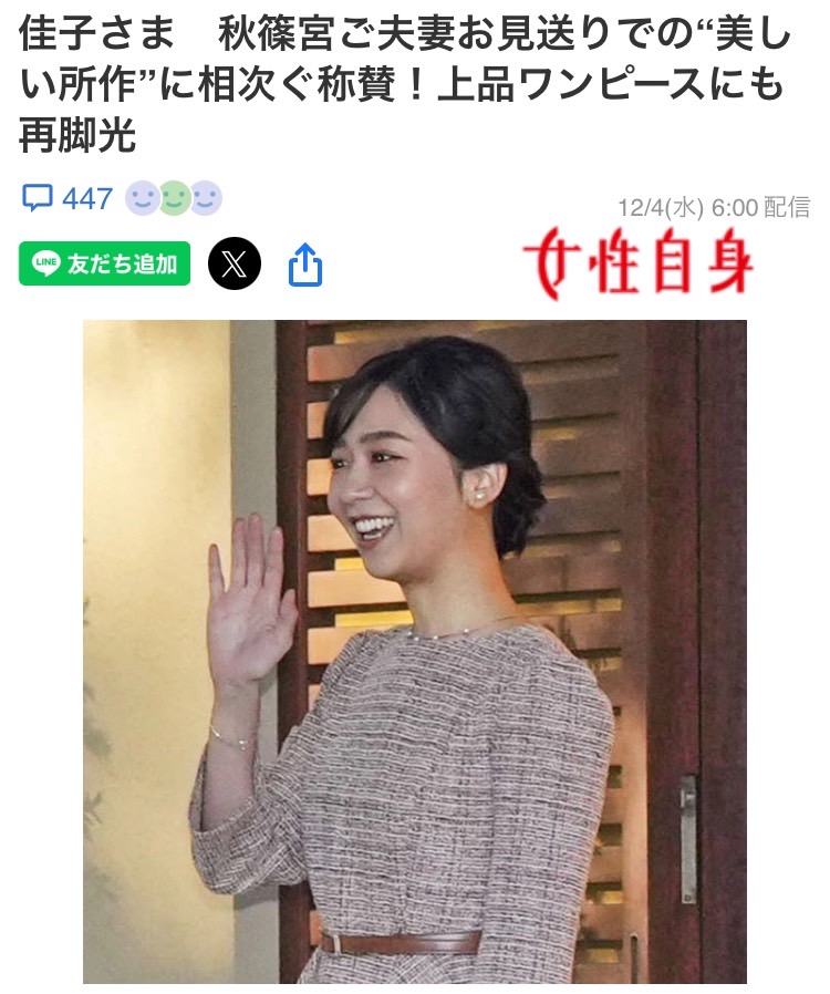 佳子さまがお召しになる洋服やアクセサリーに注目が集まるのは、単に佳子さまの美しさやファッションセンスの良さだけではなく、決して真似する事ができない、皇室で育まれたプリンセスの品格が人々の憧れを喚起して、購買意欲に繋がっているのだと感じました。