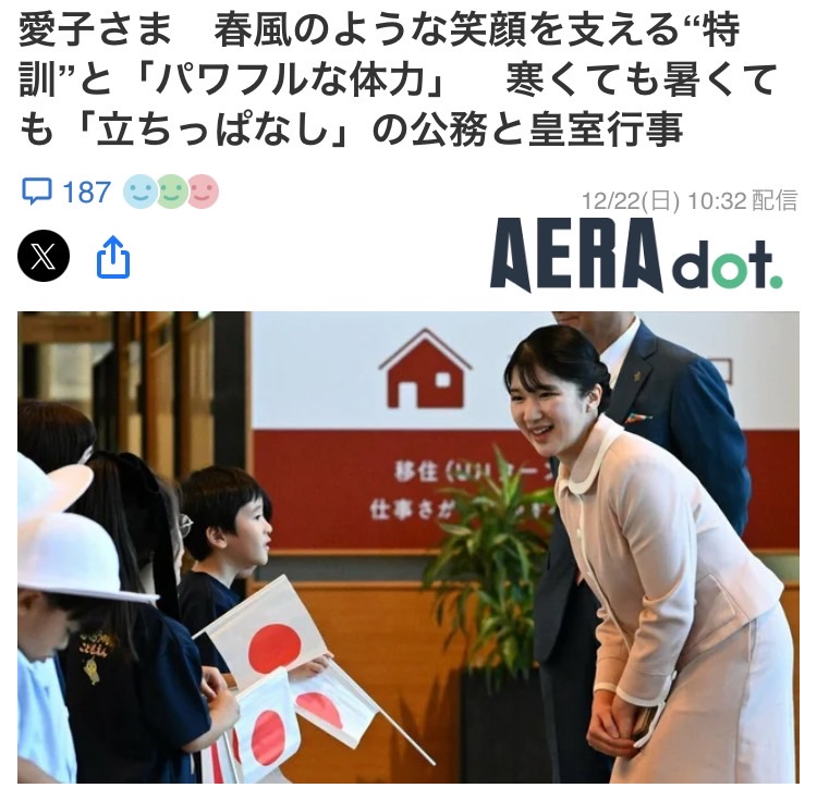 今週、愛子さまはインフルエンザに感染してしまい、ご体調が心配ですが、休養と運動で培われた「無尽蔵」の体力で回復されていると思います。