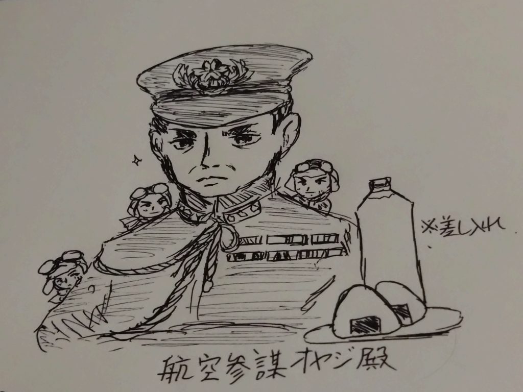 最後に戦前・戦後の世間の逆風にもまれ突破した、オヤジ殿のかわいい陣中見舞いイラストをどうぞ。皆さまの武運長久祈ります。