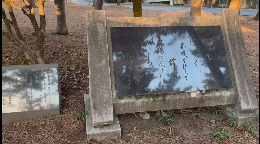 「薄青く 赤城そびえて 前橋の 廣場に人びと よろこびつどふ」