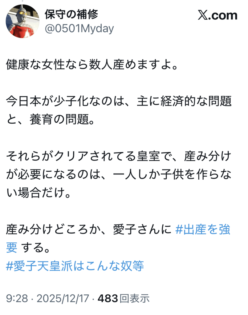 産み分けどころか、愛子さんに #出産を強要 する。#愛子天皇派はこんな奴等