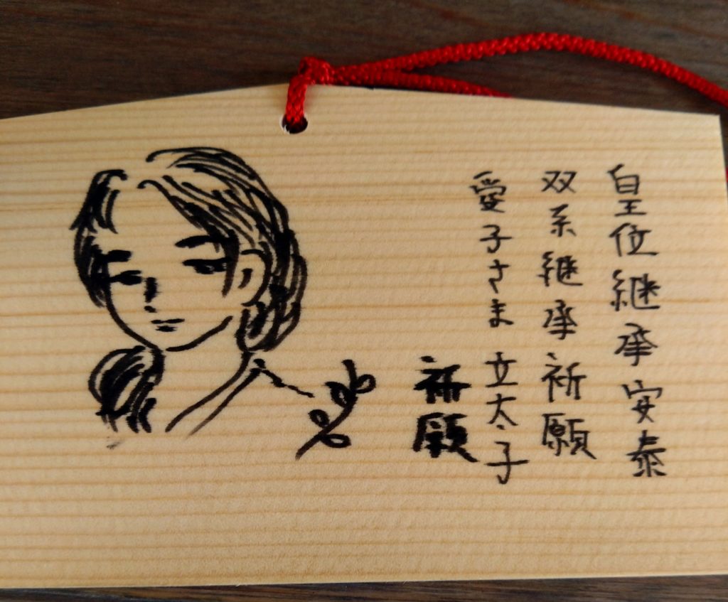 また、家内安全に含め、皇位継承安泰と愛子さまたちの弥栄を願い、周りの人たちをよろしくお願いし、絵馬を飾らせて頂きました。