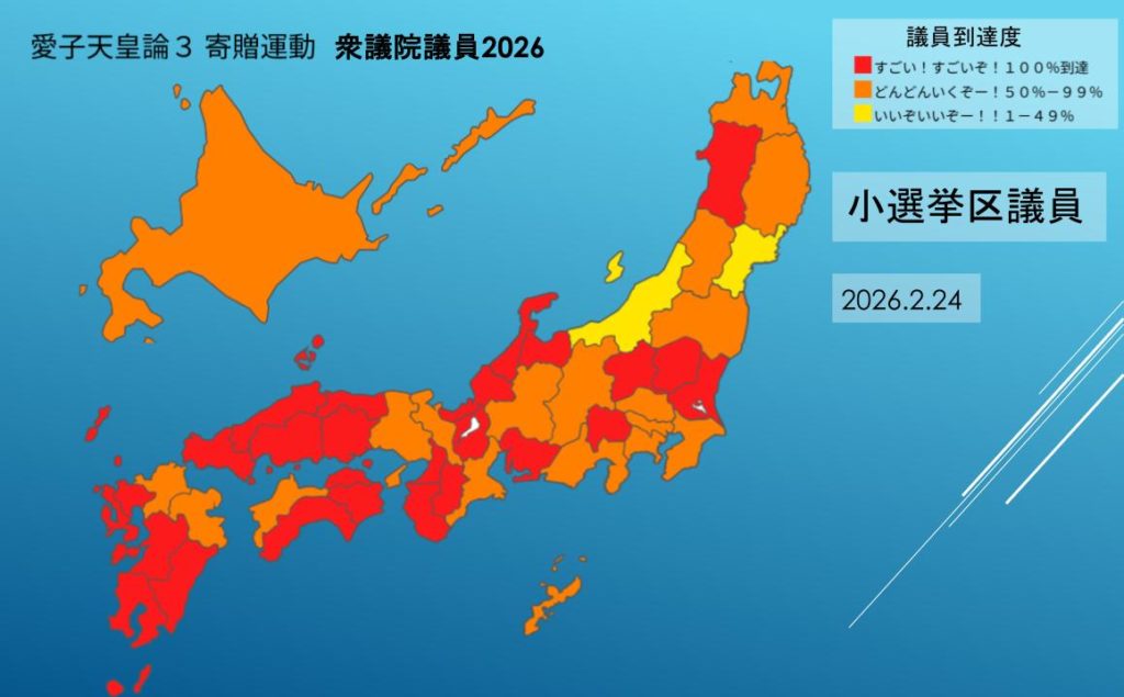 「愛子天皇論3」寄贈運動 日本地図に献本状況 コメント欄ご報告(Johnさん・コバティさん・昭和43号さん)330人/全衆議員465人 71.0% 未献本135人