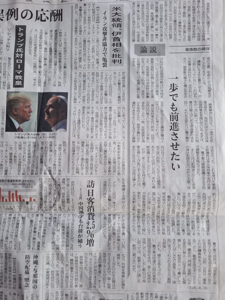 4月16日の社説「皇族数確保の議論再開 女性の身分保持へ結論を」拝読しました。