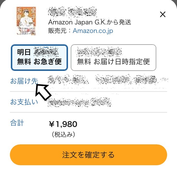 ①Amazonのサイトから注文ページを開きます。